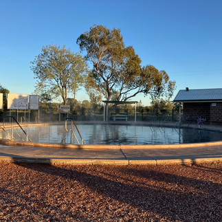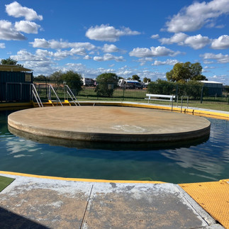 From Brewarrina I travelled to Lightning Ridge, NSW - famous for being the home of the unique 'Black Opal' (...so I had to buy one as a memento...even if it is quite modest in size). While there, I visited the John Murray Art Gallery (a well-known local artist with iconic style of comically-dressed cartoon fauna (particularly emus) and outback landscapes). I camped overnight just out of town in a roadside rest area free camp (as the prices in town were extortionate and the reviews pretty poor!), getting up early to treat myself at the local artesian bore pools at sunrise (and before it got too hot...23C by 0830). The main pool (pictured) at @ 42-43C was bearable, but only for a relatively short duration, before then having to cool off under a cold shower or sit in the (cooler) kiddies' pool nearby! I rewarded myself with a full breakfast in town o/c (with plenty of caffeine, as I was feeling far too relaxed) before heading off to a low-cost ($5p/n) campsite beside yet another artesian bore spa bath at Burren Junction. The pool at Burren Junction was a bit cooler than Lightning ridge @37 deg C, but otherwise there was nothing really there (other than the campground). From Burren Junction I headed to Gunnedah (recently in the news for having suffered severe flooding) to stay a couple of nights at the CMCA (Caravan and Motorhome Club Australia) campground ($5 per night for members, has Fresh Water (FW), rubbish and a Dump Point for Grey and Black Water, but (generally) no toilets. They are usually situated close to town/shopping centres, however, so there is usually a public toilet within a couple of hundred metres).