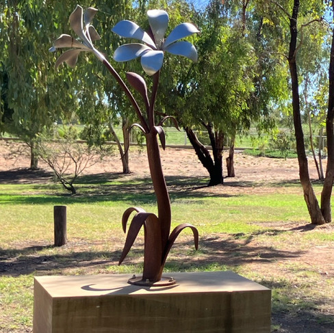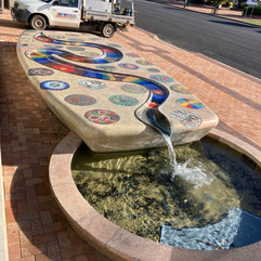 artistic fountain, Gunnedah Visitors centre / Pensioners Hill Park sculpture / Dorothea McKellar silo art / selfie at Pensioners Hill Park
