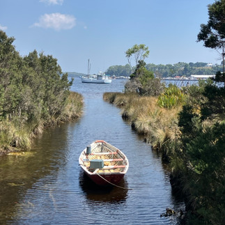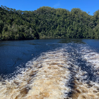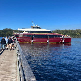 I stopped for a couple of nights at Strahan, a small, picturesque port town in the remote West of Tasmania. While its historical claim to fame was as a port servicing both the logging and mining industries of times gone by, it now relies on tourism as its main drawcard. This does translate into expensive accommodation and restaurants, etc, so once again I stayed at the local golf course. Notwithstanding that it was a couple of kms from the campgrounds to the waterfront, my trusty e-scooter had me zipping around town with abandon. On my first night in Strahan I went to see Australia's longest-running play: "The Ship That Never Was" - a comical look at the true story of 10 convict shipwrights who hijacked the last ship built at Tasmania's first convict settlement at nearby Sarah Island as it was about to be relocated to the new prison at Port Arthur. They eventually reached Valparaiso in Chile, where they eventually achieved freedom as the ship had never been formally registered (and, therefore, did not legally exist as a ship - merely a collection of assorted timbers and sundry chandlery items!). It had only two main actors, the principal being the daughter of the man that wrote the play, and she was outstanding - especially with the ad-lib one-liners! The remainder of the cast were drawn from the spectators, with plenty of participation from the audience, including the distribution of water squirters to almost everyone for the storm scene - it was terrific fun!