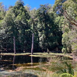 The trip from Queenstown to Derwent Bridge was, like so many of the roads I have thus far experienced in Tasmania, full of steep twists, turns and unusual cambers made even more interesting with some sizeable road deformations. To top it off, the bushfire smoke had significantly reduced visibility in places to the extent that the headlights automatically came on. Fortunately the worst of the smoke had dissipated by the time I parked up at the free camp beside the sole hotel in the area (that had only just re-opened the previous week after several months closure)....so I felt obligated to sample the beer...and a meal! The next day I visited "The Wall in the Wilderness" art gallery. Essentially it is 2 x 50m lengths of wall panels made of 3m-high blocks of Huon Pine that have been relief-sculpted to depict Tasmanian scenes of settler life, flora and fauna (as well as many stand-alone carved artefacts). Many of the panels are still only partially completed, so you can see how the wood has been transformed by the carver/sculptor Greg Duncan over a period of twenty-odd years (so far). The result is quite remarkable, particularly (for me, anyway) the skill with which Greg is able to capture drape/folds in hats/clothing and the detail of musculature in both humans and animals. Unfortunately the exhibit does not permit photography of any kind, so you will need to check it out online (search for "wall in the wilderness/images") to get an idea.