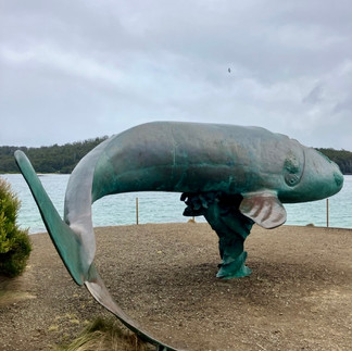 The southert-most road in Australia Southern Right Whale sculpture "Nude man, reclining on beach" driftwood