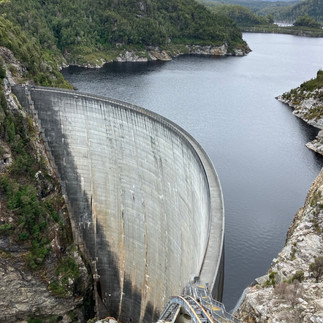 I then took the only sealed road in the Southwest conservation area and National Park that ended at the impressive Gordon Dam. While the photo shows a series of steps leading from the top to the bottom (on the left-hand side), and even though the infrastructure has a cable-car-type-thingy (bottom right), I didn't venture down because a). my knees would not have survived and b). the cable-car-type-thingy wasn't operating. I stayed overnight at an attractive little Free Camp known as "Ted's Beach" beside Lake Pedder, however the weather remained grey and chilly.