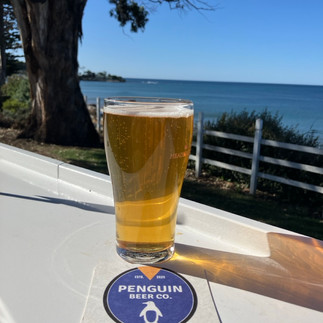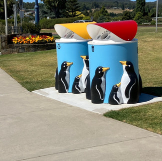 Ulverstone - Wave scultpure Penguin recycling and rubbish bins Local beer from beachside brewery...nice!