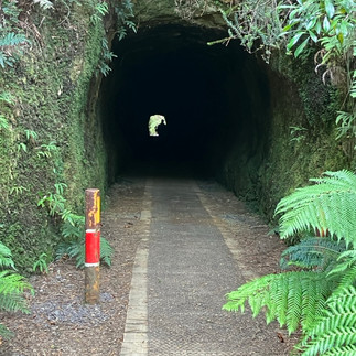 Tullah - I enjoyed a great free camp beside the boat ramp into Lake Rosebery. Unfortunate timing, however, as the Lake had been closed for a several weeks to all recreational activities (including swimming) because an oil spillage into the lake nearby. With no grocery shops since Smithton, I travelled to Rosebery to fuel and provision, returning to a campground in Tullah for a "dhobey run" (naval expression = washing my clothes). The campground also doubled as the sole hotel, bottle store and restaurant for the town (all of which I felt obliged to sample in the interests of promoting local industry, of course). The next day I moved to Rosebery to a free camp recommended by a fellow traveller. The campground was a large open clearing on a bit of a slope just a few hundred metres out of town, but I was able to navigate further down a steep drive to a small and more level clearing beside the river and bridge, which I was to share overnight with a French couple touring in a 4WD with a roof-top tent. While there, I made the short walk to the nearby Stitt Falls, but shouldn't have bothered. Due to the relatively dry summer, not only was there very little flow to get excited about, but the viewing platform was also so badly sited that you were barely able to see the fall of water at all! (as per middle pic above). The golf club at Zeehan was my next overnight stop which had an area adjacent to it for the use of campers for a 'donation' of $10 per night. Unfortunately, the area was also popular with trail bikes and quad bikes, which noisily tore up the surrounds raising clouds of choking dust. Fortunately the prevailing wind meant that I was spared the worst of it, but not all the campers were so lucky. It was also fortuitous that the majority of riders were children whose parents eventually came and picked them and their 'steeds' up at a reasonable hour. I walked up to one of the tourist spots nearby called the Spray Tunnel - a 100m stretch of abandoned rail tunnel carved through a hillside that enabled ore to be transported from the Spray Silver Mine nearby. Its sole redeeming feature of interest was a slightly keyhole-shape to enable the passage of the train's boiler.