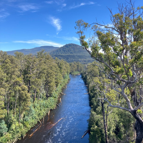 Huon River from the Tahune Airwalk Selfie at the swingbridge over the Huon River