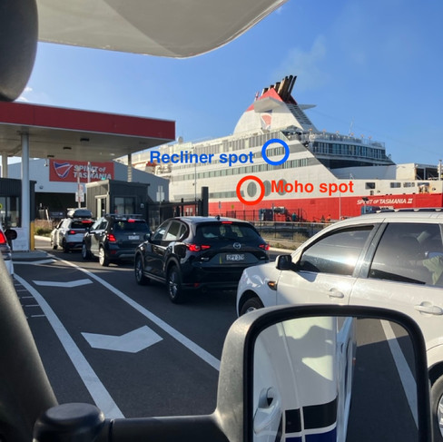 The SoT terminal opened its gates at @1900. It took only 15 mins to obtain my boarding pass, conduct border security checks (they are very strict about not bringing fresh produce into TAS), and be marshalled into one of @ 8 lanes undercover (sorted by length and height). All this was achieved with great efficiency, however, there was subsequently nothing to do until @ 2115, when boarding activity recommenced onto SoT in earnest. Once again the marshalling was very efficient, and I was embarked/parked up by 2140. The 2200 ETD turned into 2300 and I eventually retired to my window-side recliner with blanket and pillow following a very late pie and beer for my dinner. While the crossing was comparatively calm, I suffered a bout of vicious shingles which precluded getting much sleep, eventually dozing off around 0600....to then be woken up at 0700! Breakfast and coffee was followed by a delayed ETA into Devonport, Tasmania, at @0930. While I had booked into a caravan park nearby for a couple of days, I can report that there was very little activity in Devonport on this particular weekend!