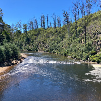 Corinna on banks of the Pieman River was a remote but beautiful spot, but had only one campground associated with the sole business in the area, the Eco Adventure Lodge, so they charged like wounded bulls. I did do a couple of the shorter walks, but both were somewhat but underwhelming (especially a 600m Huon Pine walk described as one of the "5 must-do walks of Tasmania"), but a refreshing swim in the river at the end made up for them both. I camped overnight and enjoyed a very good meal at the lodge. The following morning I spent a lazy 4 hours cruising down the river on the MV Arcadia II (pictured above), built in 1930 out of Huon Pine. I should explain that Huon Pine is a slow-growing conifer (but actually not a pine tree!) that is native/endemic to Tasmania's temperate and wet rainforests in the West and Southwest of the island only. The timber is highly prized for its durable, rot-resistant and high flotation characteristics that make it ideal for boatbuilding. Anyway, the cruise meandered its way down the Pieman River, stopping just short of the rivermouth/bar so the passengers could enjoy a walk on the beach (and an included bag lunch) before returning to Corinna. Following another swim in the river that afternoon, Corinna experienced a couple of brief but dramatic thunderstorms, with much lightning and a little rain. Following this, I then crossed the Pieman River on the "Fatman Barge", stopping at a free camping spot on Lake Pieman beside the Reece Dam overnight. There was already a lot of smoke in the air and a few monsoon-bucket equipped helicopters flying around, with some of the previously-mentioned 'dry' lightning strikes having ignited bushfires throughout the region. While there were bushfire warnings that followed me around for the next couple of weeks, the road to my next destination, Tullah, remained open (the dirt road I had travelled on into Corinna from the North was closed, and the ferry was only taking cars southward).