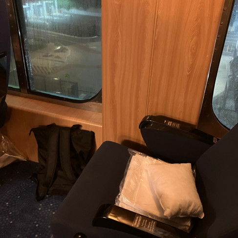 Preparing to board the SoT My recliner spot for the night crossing (plenty of leg room!)