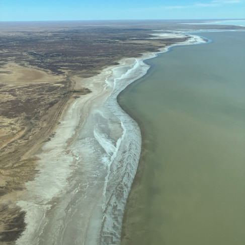 Back to William Creek the next day... on the same diabolical dirt road... Because of the increasingly hot daytime temperatures, the flight departure for my flight over Lake Eyre was brought forward from 0930 to 0800. The aircraft was a 14-seater and quite comfortable (especially compared to the 4-seater I had flown in over Carnarvon Gorge in QLD the previous year!) with noise-cancelling headphones provided so you could actually follow the pilot's commentary, even if a bit hard of hearing, like me. Pictures and videos from the aircraft cannot do justice to the amazing and expansive vistas of Lake Eyre in full flood (the lake had actually started to recede, as evaporation now exceeded the water still flowing into it by the time I flew over, but the lake still covered an area the size of Wales and having filled up from the rivers and trubutaries coming down from Queensland several months after the severe flooding experienced in those places. This was the most extensive flooding/filling of Lake Eyre for more than fifteen years, so I was quite privileged in what I was able to see. The fact that fauna/fish are able to survive in this lake despite the incredible salinity (with some creatures even able to 'hibernate' beneath the dried out lake until a suitable flooding re-awakens them) is really remarkable. Once Lake Eyre has dried out/receded, it leaves behind some 400,000,000 tonnes of salt!