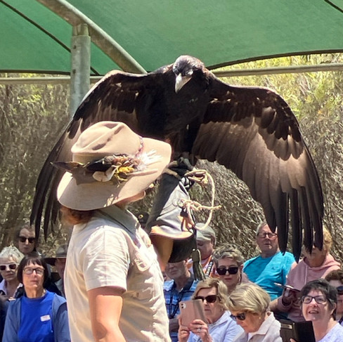 Following a night at Vivonne Bay, I stopped in at the Raptor Domain, which was a better experience than I had anticipated. I enjoyed both the interaction with the birds of prey and the very informative commentary by the bird handlers. I had a large owl (bottom right pic) sit on my knee and stroke its back/wing feathers, which were remarkably soft - apparently a characteristic which makes them almost silent in flight and very effective hunters of mice!